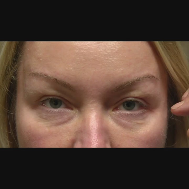 Case 6:Combination of endoscopic temporal brow lift, upper lid blepharoplasty, brow fat pad suspension sutures, right internal ptosis repair, and lower lid transconjunctival blepharoplasty with subperiosteal fat repositioning.